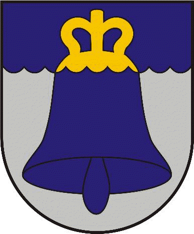 Herbo aprašymas: Sidabriniame lauke, kurio mėlyna galva atskirta banguota linija, vaizduojamas mėlynas varpas, jo viršus - auksinis. |